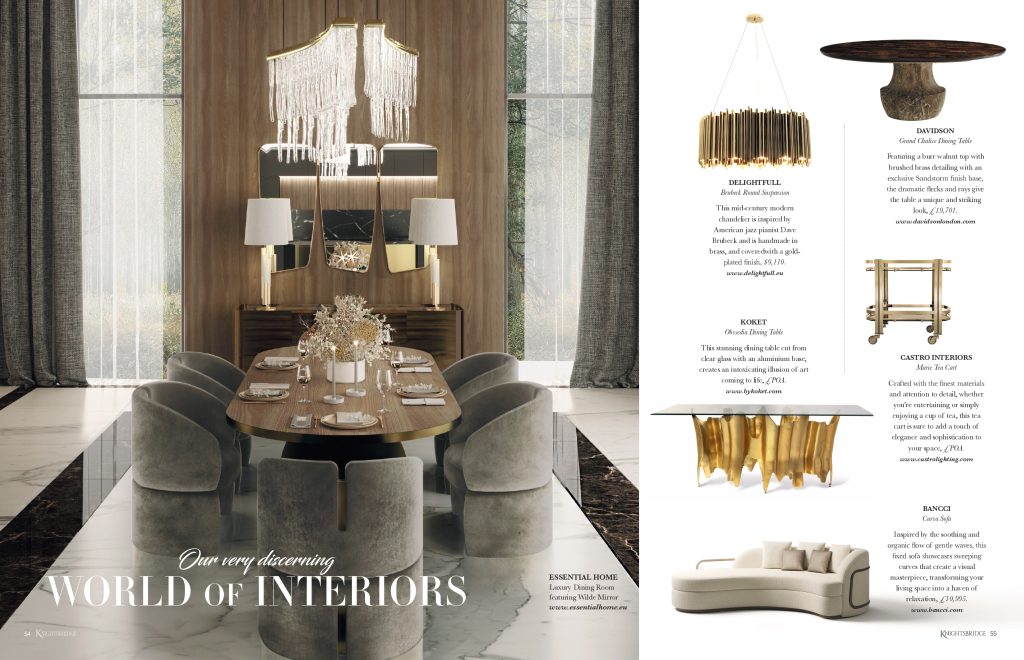 We are delighted to share that The Curva Sofa has been prominently featured in the renowned Knightsbridge Magazine, highlighting Bancci’s commitment to blending natural beauty with refined modern design. With its striking curved design inspired by flowing waves, this fixed sofa embodies harmony, sophistication, and modern elegance. Perfect for any interior space, it’s a must-have luxury furniture piece for refined interior design.