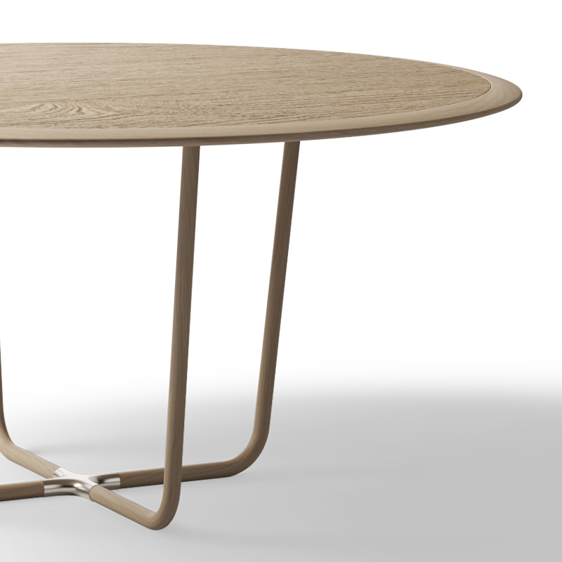 The Cygnus Circulus Dining Table is aptly named after the celestial star in our vibrant Milky Way due to the graceful, swan-like curvature of its legs. Crafted with meticulous attention to detail, this circular table seamlessly blends smooth edges with soft contours, ensuring comfort and a sophisticated atmosphere. The contrasting textured inner detail panel beautifully expresses the natural timber grain, adding a touch of character.